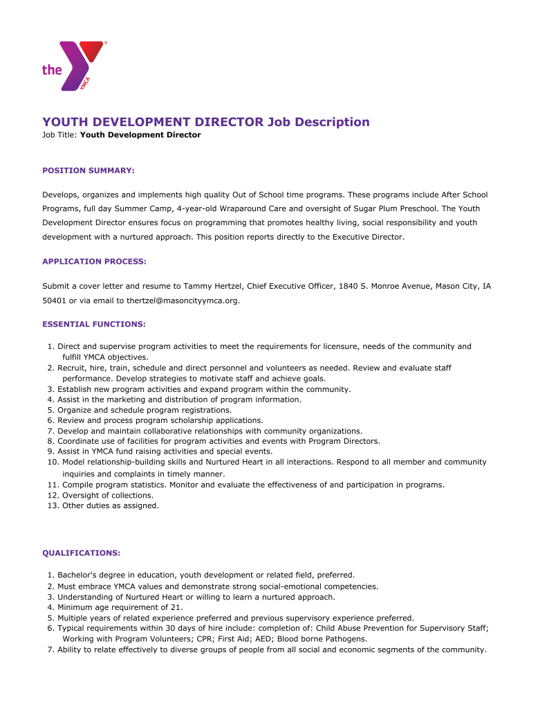 - Direct and supervise program activities to meet the requirements for licensure, needs of the community and fulfill YMCA objectives.
